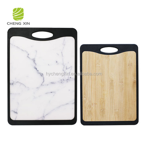 Nuevo diseño respetuoso con el medio ambiente, venta al por mayor, uso de doble cara, tabla de cortar de plástico y bambú, accesorios de cocina