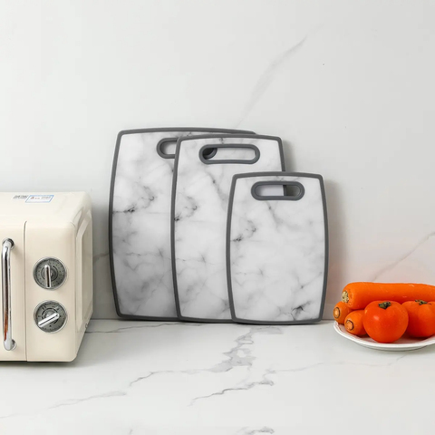 Juego de tablero de cocina de mármol blanco, tabla de cortar de tallado de plástico de 3 tamaños con diseño personalizado